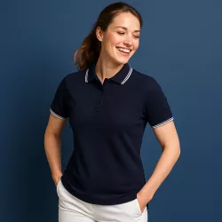 ARBEITS-POLO-SHIRT DAMEN | Stretch Kontrast 523 von ID / Farbe: navy  / 85% BAUMWOLLE 10% VISKOSE 5% ELASTHAN | MEIN-KASACK.de - KASACK - KASACKS