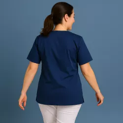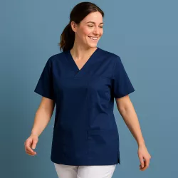 Der Schnitt des Damen-Kasacks 2651 ist exakt auf die Bedürfnisse des Pflegeberufs abgestimmt. Der leichte Stoff in Kombination mit einem geraden Saum und praktischen Seitenschlitzen sorgt für maximale Flexibilität. Bewegungsabläufe wie Heben, Drehen, Strecken oder das Arbeiten über Kopf werden durch die lockere, aber körpernahe Passform nicht eingeschränkt. Der spitze Halsausschnitt und die weite Öffnung erleichtern nicht nur das An- und Ausziehen, sondern verhindern auch, dass beim Bücken ungewollte Einblicke entstehen. Gleichzeitig bietet der 1/2-Arm-Schnitt genügend Luftzirkulation, ohne zu locker oder zu eng zu sein. Insgesamt vermittelt der Schnitt das Gefühl, „mit dem Kasack zu arbeiten“ – nicht gegen ihn. Diese Bewegungsfreiheit zahlt sich gerade im stressigen Stationsalltag oder bei der mobilen Pflege doppelt aus.