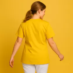 Der Schnitt des Damen-Kasacks 2651 ist exakt auf die Bedürfnisse des Pflegeberufs abgestimmt. Der leichte Stoff in Kombination mit einem geraden Saum und praktischen Seitenschlitzen sorgt für maximale Flexibilität. Bewegungsabläufe wie Heben, Drehen, Strecken oder das Arbeiten über Kopf werden durch die lockere, aber körpernahe Passform nicht eingeschränkt. Der spitze Halsausschnitt und die weite Öffnung erleichtern nicht nur das An- und Ausziehen, sondern verhindern auch, dass beim Bücken ungewollte Einblicke entstehen. Gleichzeitig bietet der 1/2-Arm-Schnitt genügend Luftzirkulation, ohne zu locker oder zu eng zu sein. Insgesamt vermittelt der Schnitt das Gefühl, „mit dem Kasack zu arbeiten“ – nicht gegen ihn. Diese Bewegungsfreiheit zahlt sich gerade im stressigen Stationsalltag oder bei der mobilen Pflege doppelt aus.